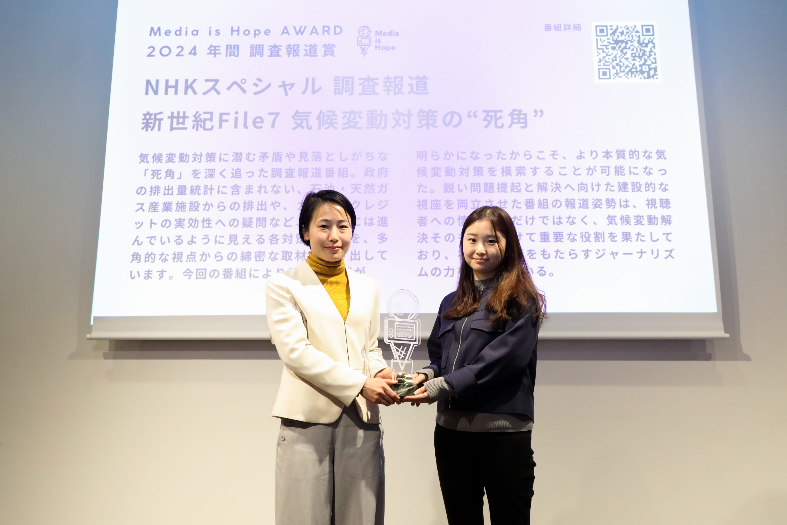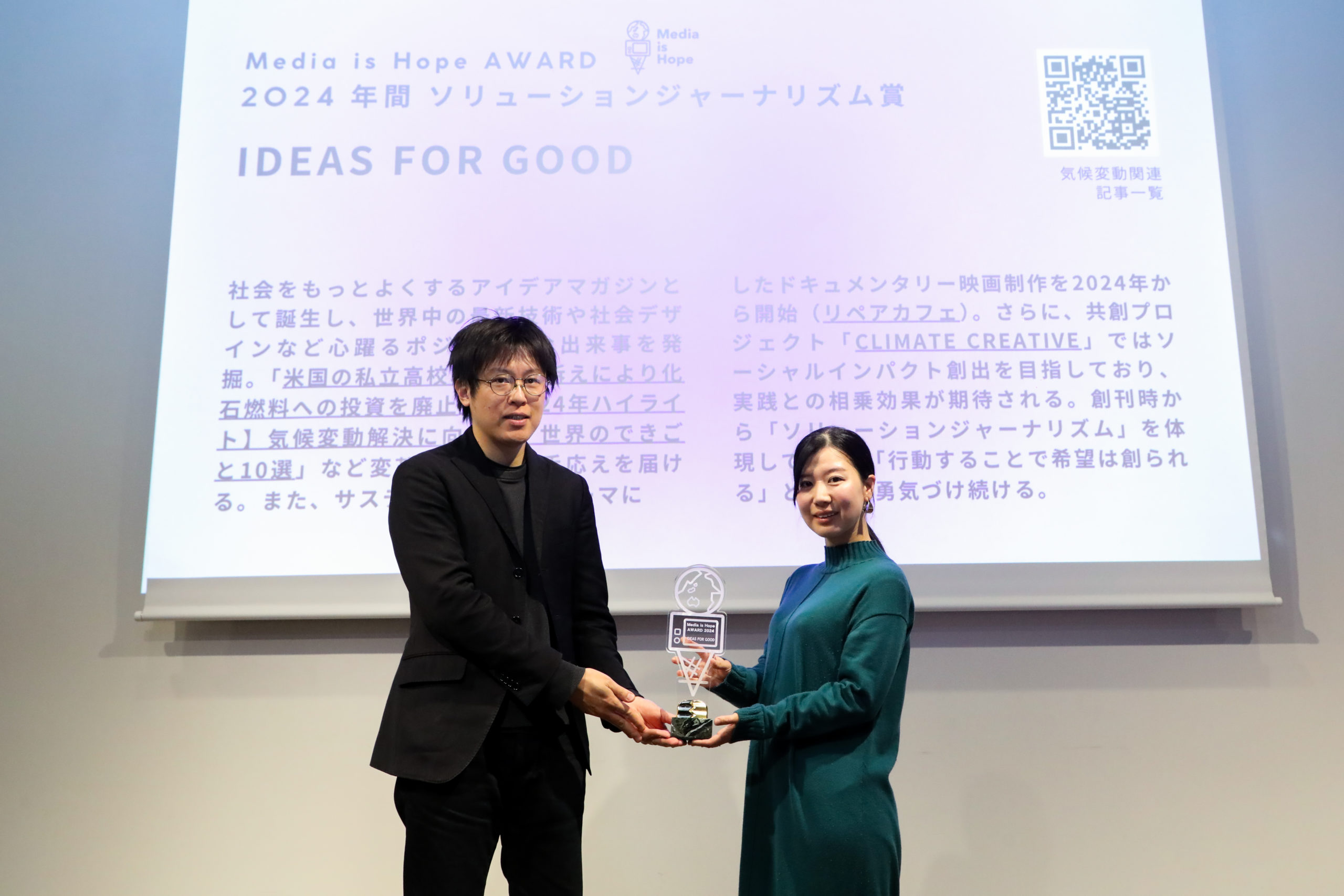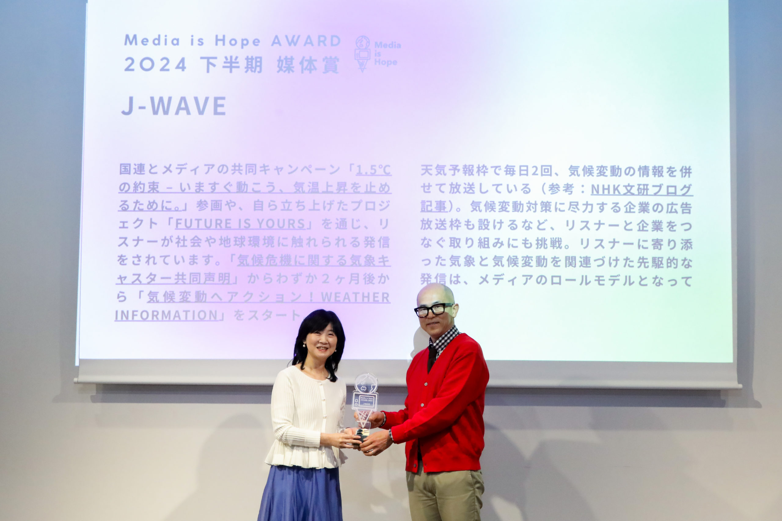 *The Media is Hope Award is an award presented by MEDIA IS HOPE Inc. to recognize the achievements of media/journalists who contribute to solving social issues such as climate change and SDGs.
