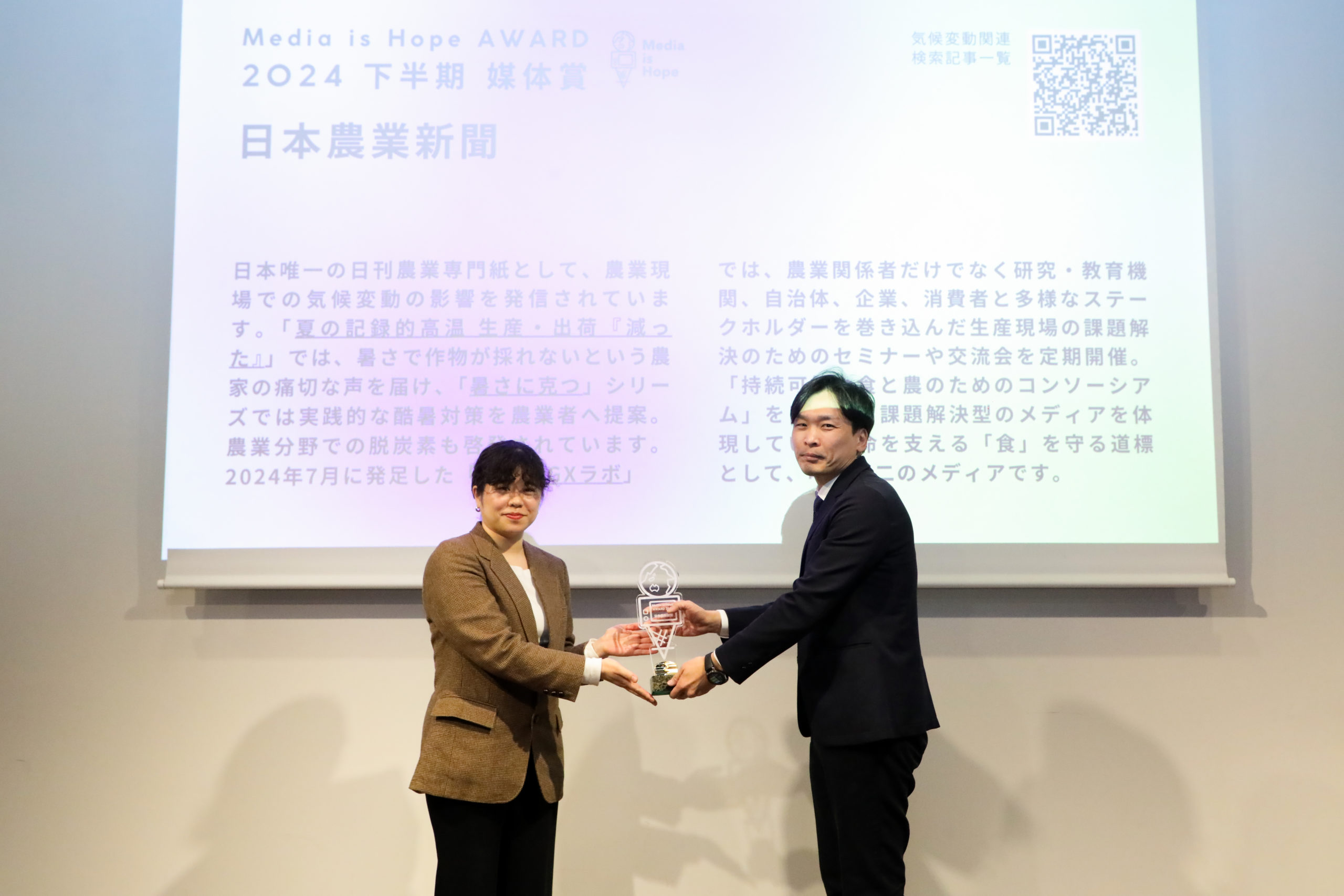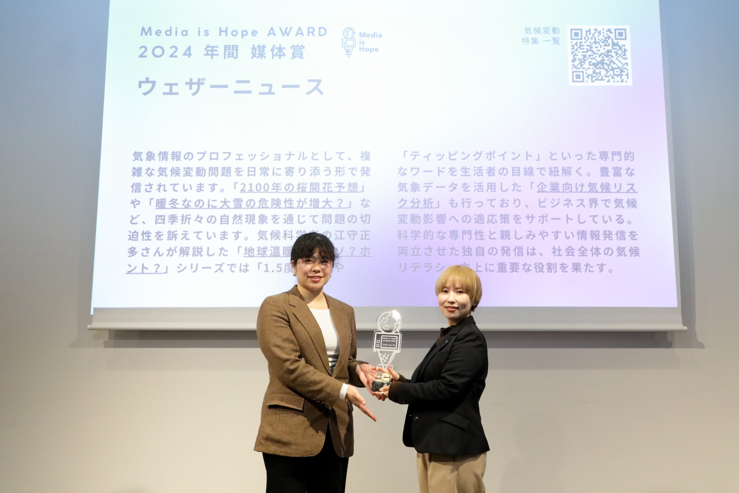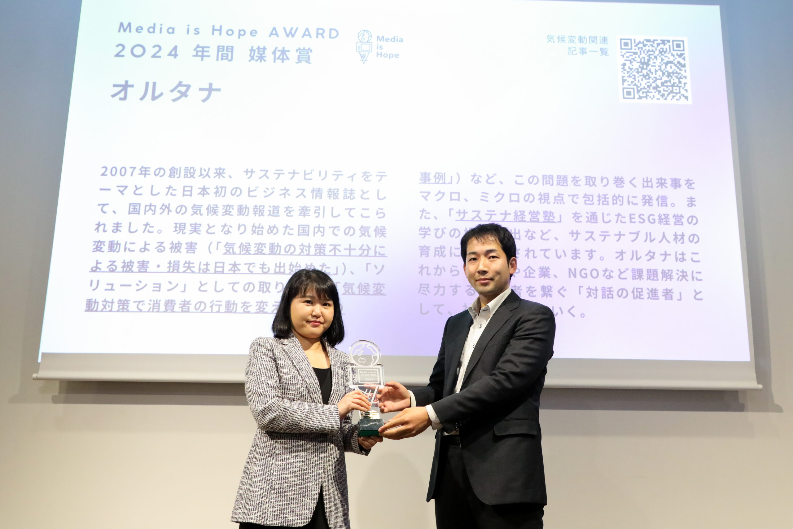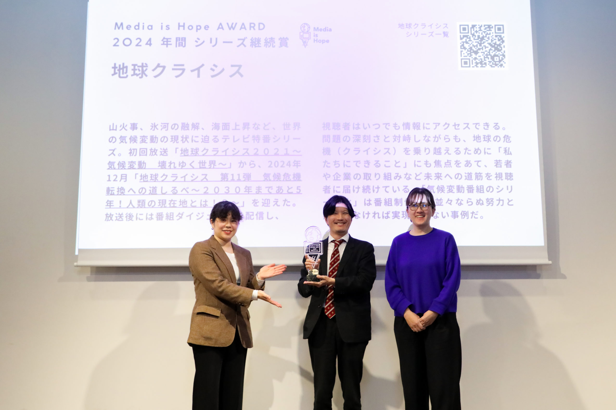 *The Media is Hope Award is an award presented by MEDIA IS HOPE Inc. to recognize the achievements of media/journalists who contribute to solving social issues such as climate change and SDGs.