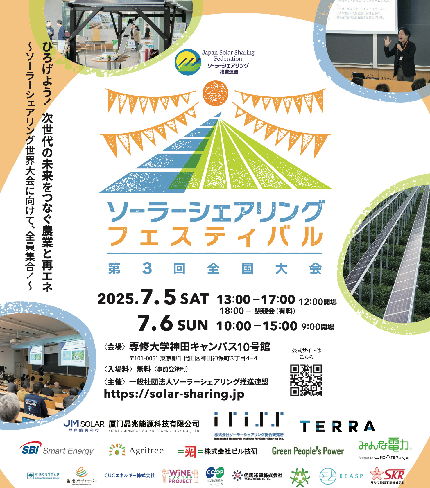 【2025.7.5(土)-6(日)】ひろげよう!次世代の未来をつなぐ農業と再エネ「ソーラーシェアリングフェスティバル ~第3回全国大会~ 」開催!!